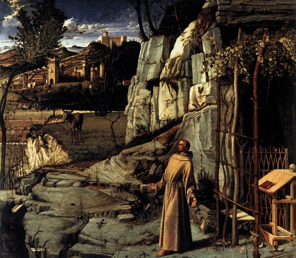 Ti offriamo una riproduzione artigianale su tela dell'opera famosa 'San Francesco in estasi' di Giovanni Bellini, dal Museo delle Riproduzioni.