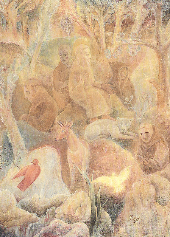 Ti offriamo una riproduzione artigianale su tela dell'opera famosa 'San Francesco in the Woods' di Albert Bloch, dal Museo delle Riproduzioni.