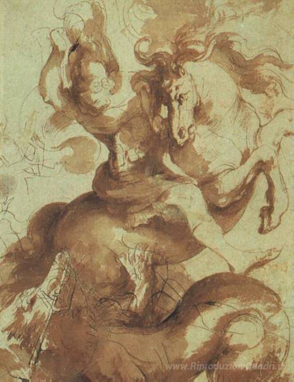 Ti offriamo una riproduzione artigianale su tela dell'opera famosa 'San Giorgio che uccide il drago' di Peter Paul Rubens, dal Museo delle Riproduzioni.