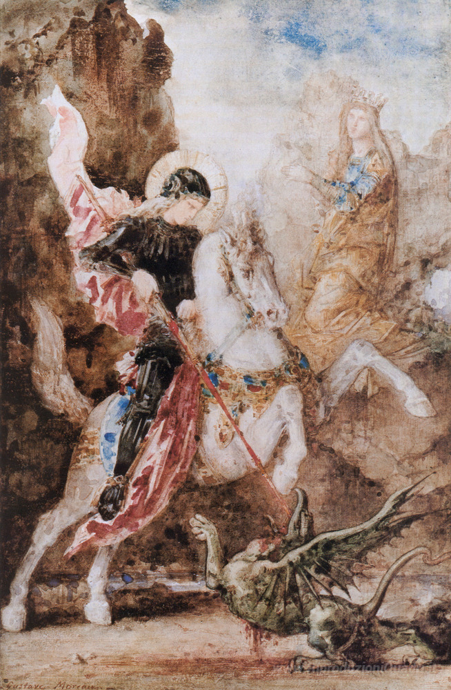Scopri l'incanto del dipinto a olio San Giorgio di Gustave Moreau, un'opera che rappresenta l'interpretazione unica e poetica dell'artista francese nel panorama dell'arte mondiale. Gustave Moreau, noto per il suo stile simbolista e la sua capacità di mescolare elementi fantastici e mitologici, riesce a catturare l'essenza del mito attraverso una palette di colori vibranti e dettagli ricercati. Ogni pennellata racconta una storia, trasportando l'osservatore in un universo onirico e affascinante.