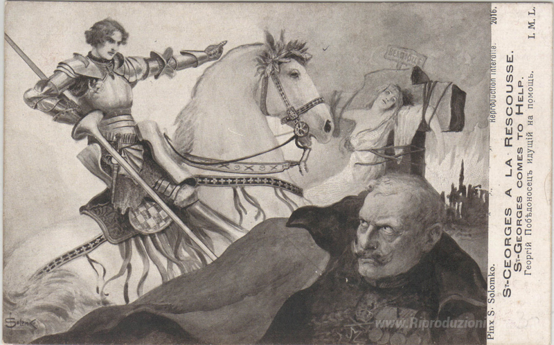 Ti offriamo una riproduzione artigianale su tela dell'opera famosa 'San Giorgio, venendo in soccorso' di Sergey Solomko, dal Museo delle Riproduzioni.