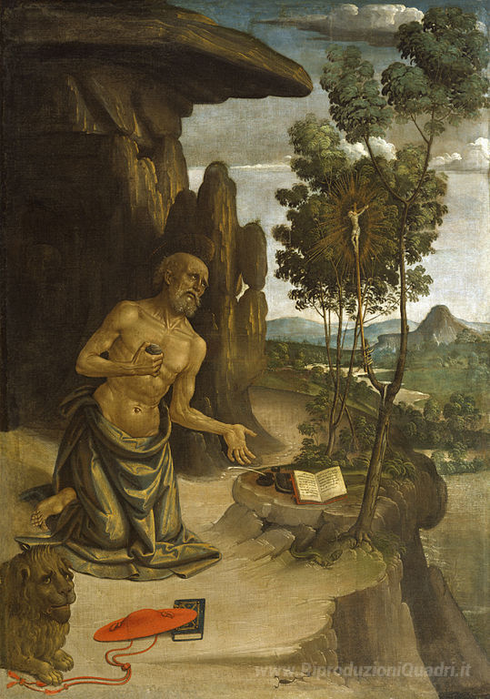 Ti offriamo una riproduzione artigianale su tela dell'opera famosa 'San Girolamo nel deserto' di Pinturicchio, dal Museo delle Riproduzioni.