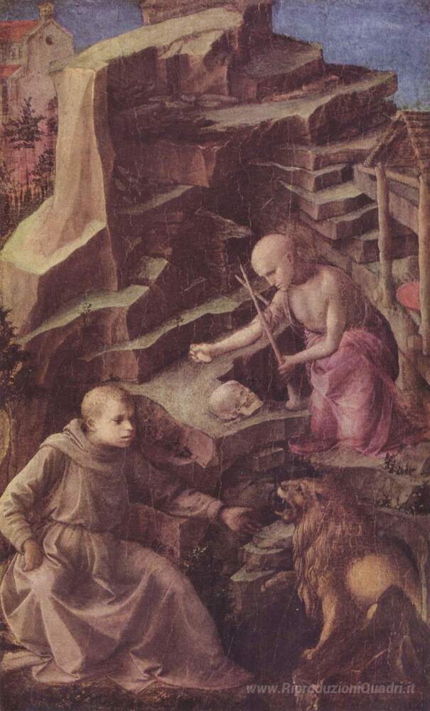 Ti offriamo una riproduzione artigianale su tela dell'opera famosa 'San Girolamo nel deserto' di Filippo Lippi, dal Museo delle Riproduzioni.