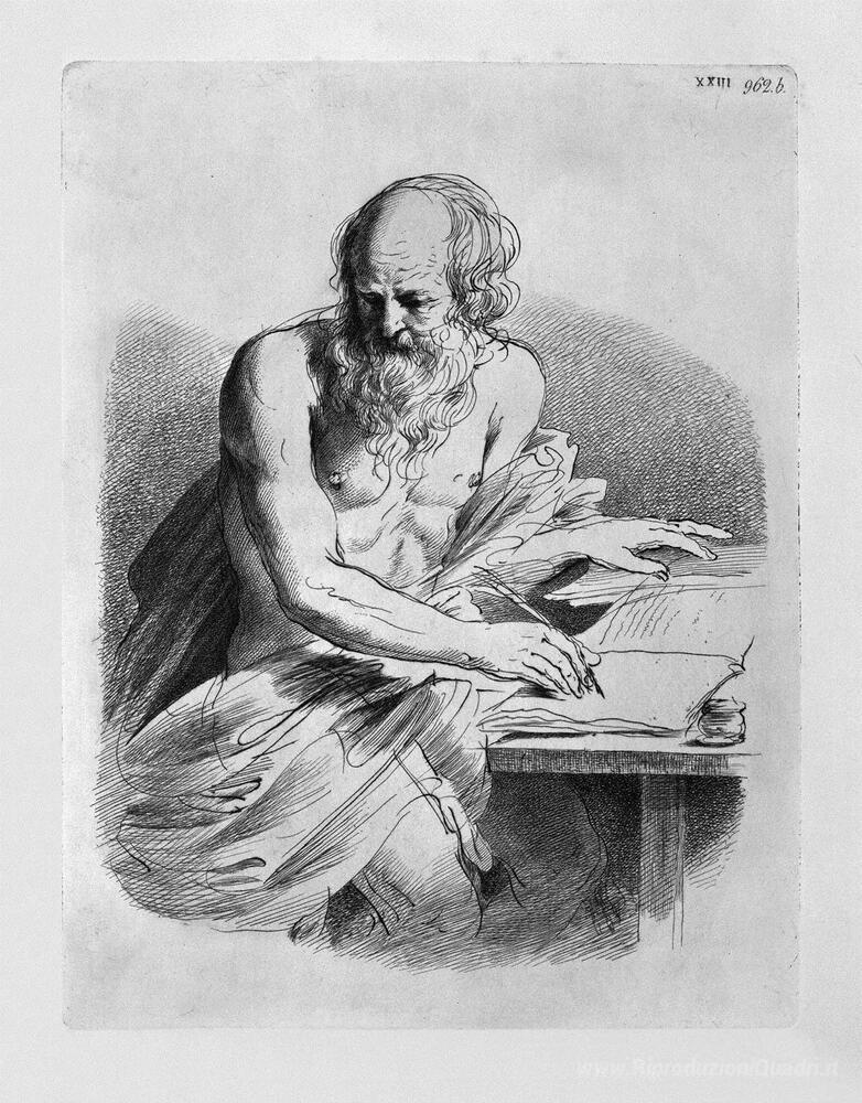 Ti offriamo una riproduzione artigianale su tela dell'opera famosa 'San Girolamo nell'atto dello scrivere, del Guercino' di Giovanni Battista Piranesi, dal Museo delle Riproduzioni.
