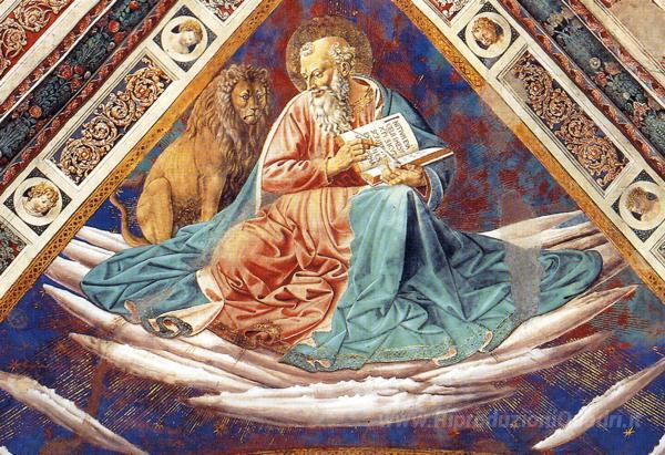 Ti offriamo una riproduzione artigianale su tela dell'opera famosa 'San Marco (particolare dei quattro evangelisti)' di Benozzo Gozzoli, dal Museo delle Riproduzioni.