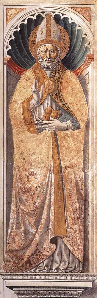Ti offriamo una riproduzione artigianale su tela dell'opera famosa 'San Nicola di Bari' di Benozzo Gozzoli, dal Museo delle Riproduzioni.
