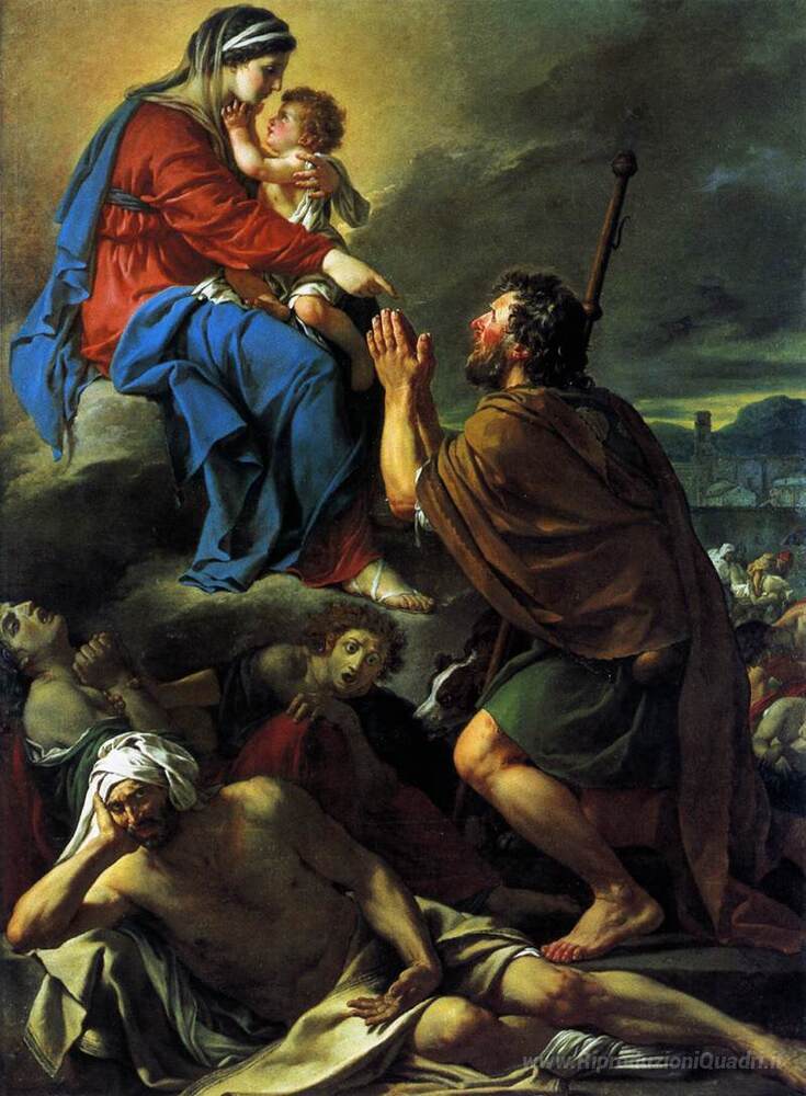 Ti offriamo una riproduzione artigianale su tela dell'opera famosa 'San Rocco pregare la Vergine per la fine della peste' di Jacques-Louis David, dal Museo delle Riproduzioni.