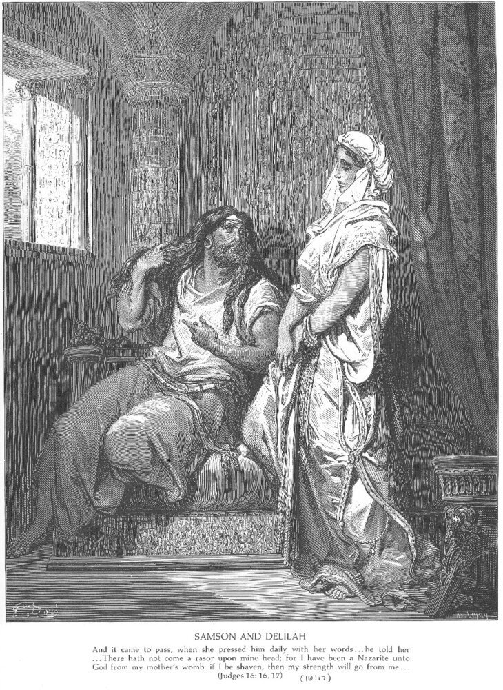 Ti offriamo una riproduzione artigianale su tela dell'opera famosa 'Sansone e Dalila' di Gustave Dore, dal Museo delle Riproduzioni.