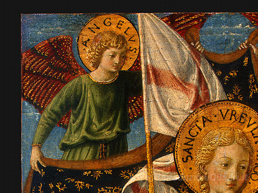 Ti offriamo una riproduzione artigianale su tela dell'opera famosa 'Sant'Orsola con Angeli e donatore (particolare)' di Benozzo Gozzoli, dal Museo delle Riproduzioni.