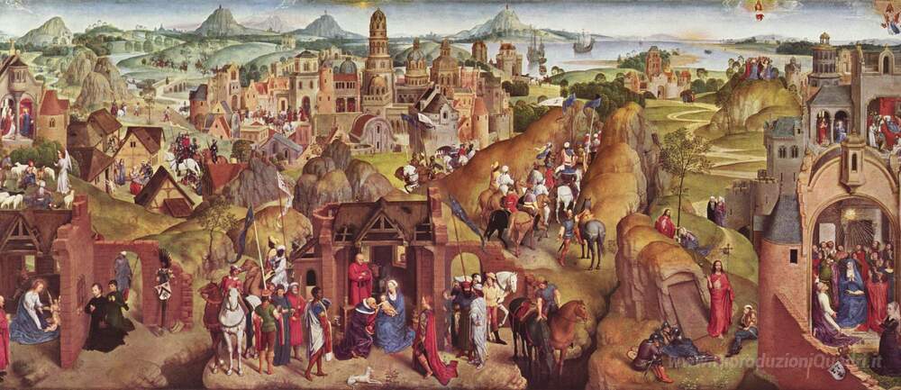 Ti offriamo una riproduzione artigianale su tela dell'opera famosa 'Scene della vita di Maria' di Hans Memling, dal Museo delle Riproduzioni.