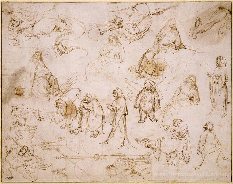 Ti offriamo una riproduzione artigianale su tela dell'opera famosa 'Schizzi per una tentazione di Sant'Antonio' di Hieronymus Bosch, dal Museo delle Riproduzioni.