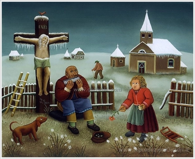 Ti offriamo una riproduzione artigianale su tela dell'opera famosa 'senza attribuzioni' di Ivan Generalic, dal Museo delle Riproduzioni.