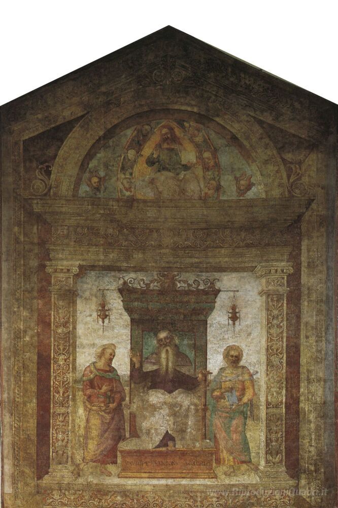 Ti offriamo una riproduzione artigianale su tela dell'opera famosa 'Signore e cherubini' di Pietro Perugino, dal Museo delle Riproduzioni.