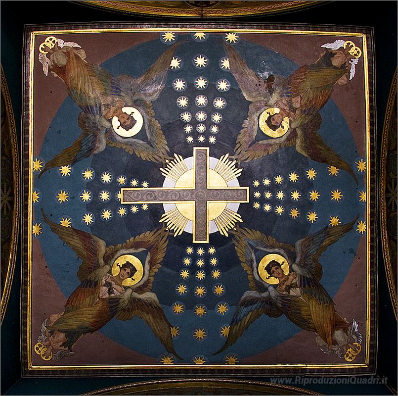 Ti offriamo una riproduzione artigianale su tela dell'opera famosa 'Soffitto nella Cattedrale di San Vladimiro di Kiev' di Wilhelm Kotarbinski, dal Museo delle Riproduzioni.