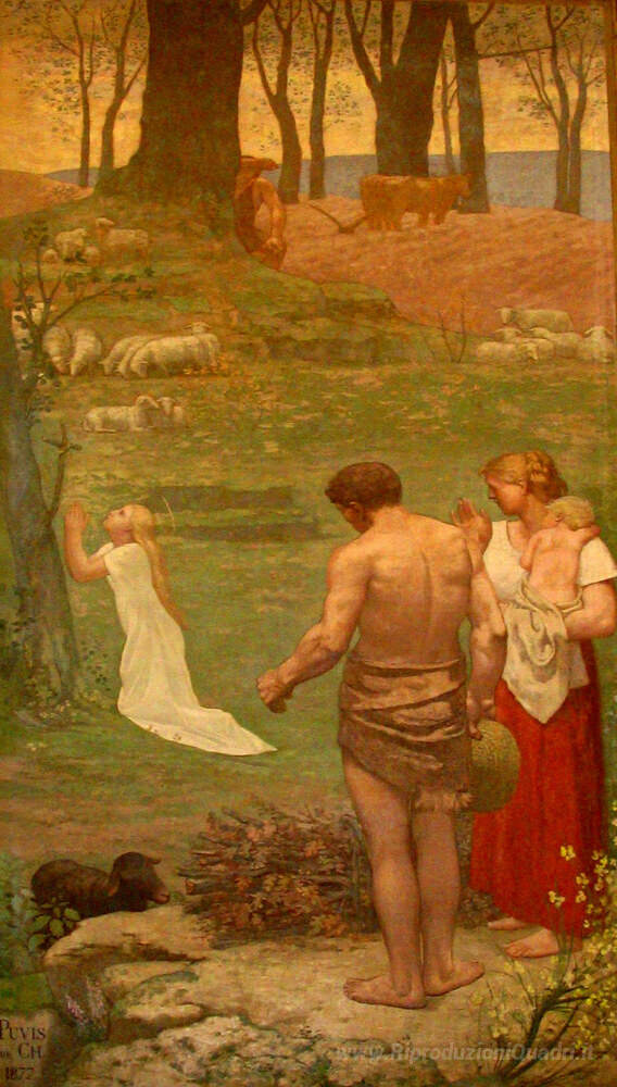 Lo stile di Puvis de Chavannes si distingue per l'uso sapiente degli spazi e dei colori, creando composizioni che evocano emozioni profonde. Le tecniche artistiche impiegate dall'artista, come l'uso di toni morbidi e la resa espressiva dei soggetti, permettono al dipinto di adattarsi perfettamente a qualsiasi ambiente, esaltando l'atmosfera dello spazio in cui è esposto. Acquistare un'opera di questo calibro non è solo un investimento estetico, ma un modo per arricchire la propria vita con la storia e la cultura dell'arte italiana.