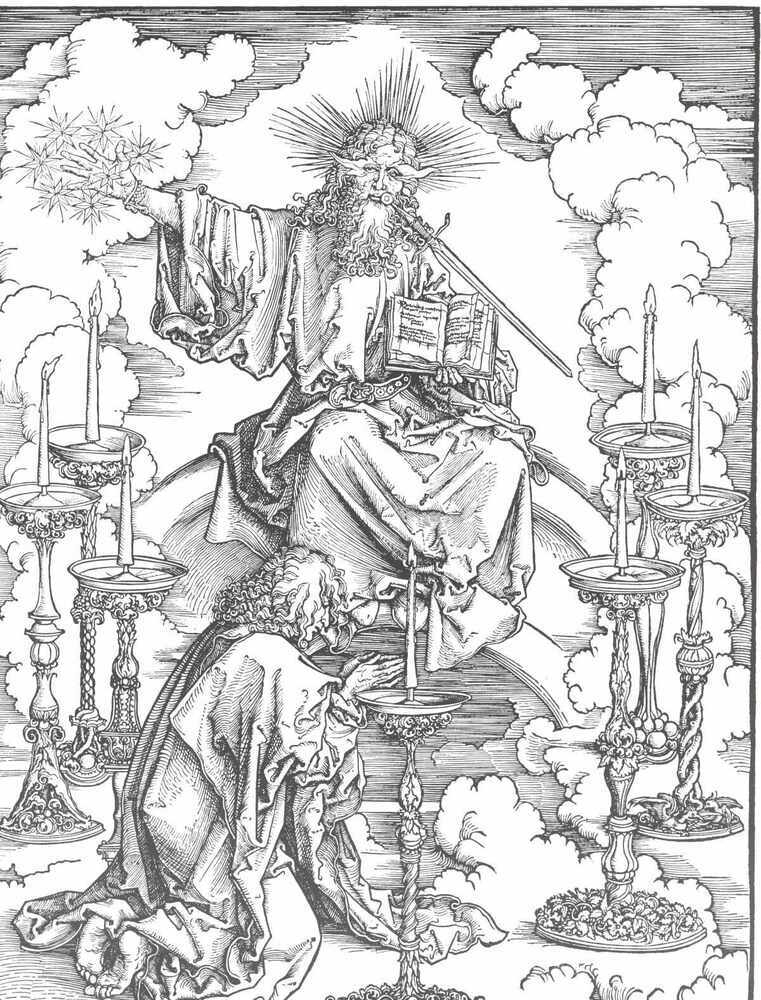 Ti offriamo una riproduzione artigianale su tela dell'opera famosa 'St John `s visione di Cristo e dei sette candelabri' di Albrecht Durer, dal Museo delle Riproduzioni.