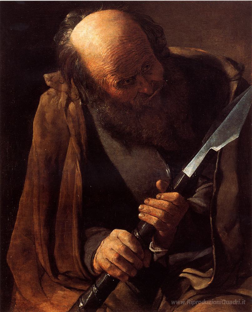 Ti offriamo una riproduzione artigianale su tela dell'opera famosa 'St. Thomas' di Georges de la Tour, dal Museo delle Riproduzioni.