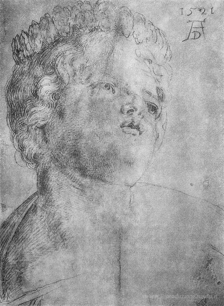 Ti offriamo una riproduzione artigianale su tela dell'opera famosa 'Studi su un "quadro di Maria" grande S. Caterina' di Albrecht Durer, dal Museo delle Riproduzioni.