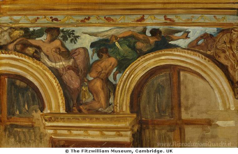 Ti offriamo una riproduzione artigianale su tela dell'opera famosa 'Studio per una parte del fregio della 'giustizia'' di Eugene Delacroix, dal Museo delle Riproduzioni.