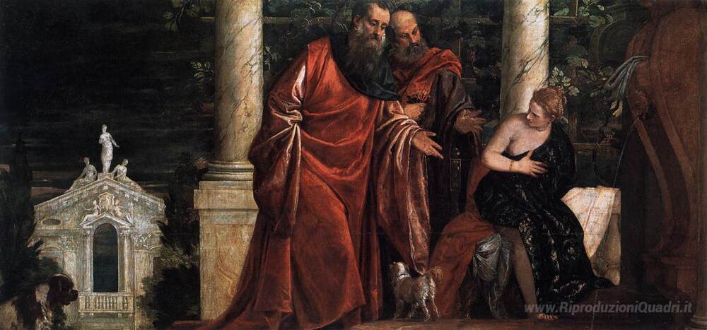 Ti offriamo una riproduzione artigianale su tela dell'opera famosa 'Susanna ei vecchioni' di Paolo Veronese, dal Museo delle Riproduzioni.