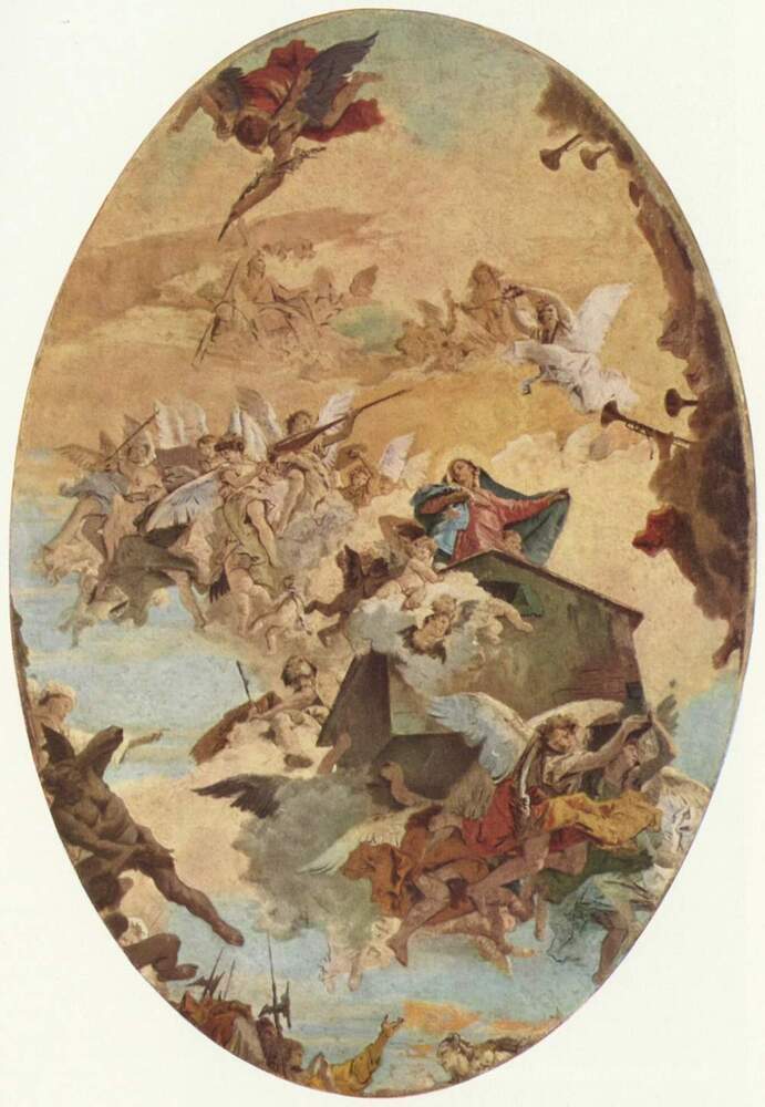 Questo dipinto non solo arricchisce visivamente gli spazi, ma crea anche un'atmosfera di quiete e contemplazione. La delicata composizione e l'armonia dei colori rendono Trasporto della Santa Casa di Nazareth a Loreto un'opera perfetta per ogni ambiente, dal soggiorno all'ufficio, contribuendo a elevare la bellezza e la spiritualità di ogni spazio abitativo. Scoprite come la grande arte di Giovanni Battista Tiepolo possa trasformare la vostra casa in un'opera d'arte vivente.