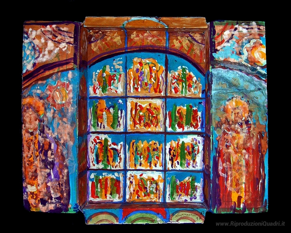 Ti offriamo una riproduzione artigianale su tela dell'opera famosa 'Trittico' di George Stefanescu-Ramnic , dal Museo delle Riproduzioni.