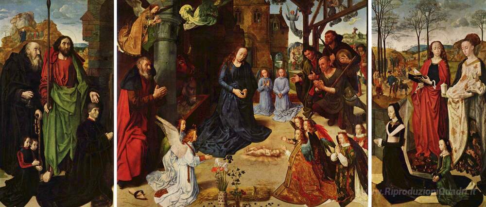 Ti offriamo una riproduzione artigianale su tela dell'opera famosa 'Trittico Portinari' di Hugo van der Goes, dal Museo delle Riproduzioni.