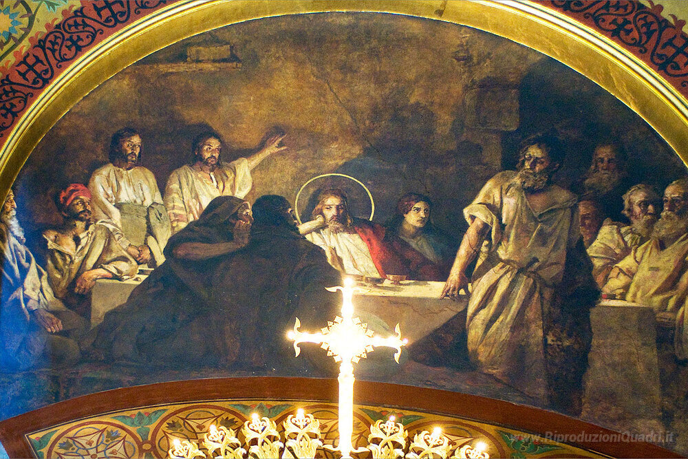 Ti offriamo una riproduzione artigianale su tela dell'opera famosa 'ultima Cena' di Wilhelm Kotarbinski, dal Museo delle Riproduzioni.