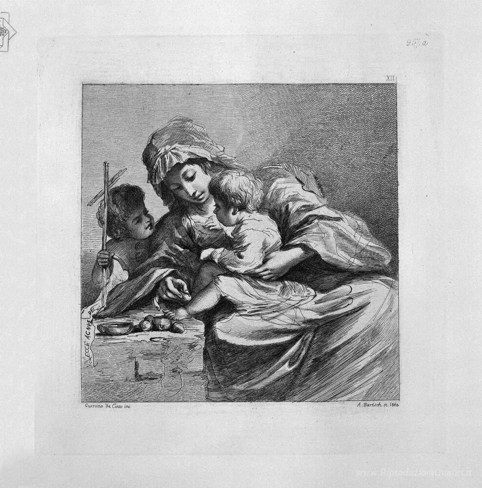 Ti offriamo una riproduzione artigianale su tela dell'opera famosa 'Vergine con Gesù e Giovanni il Battista' di Giovanni Battista Piranesi, dal Museo delle Riproduzioni.