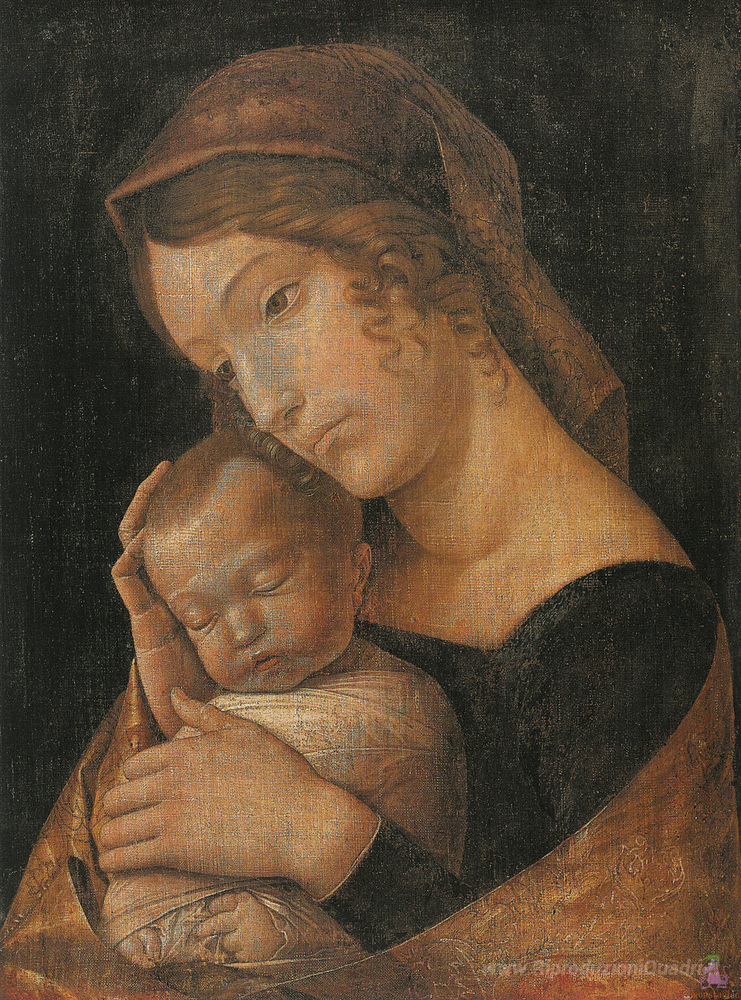 Ti offriamo una riproduzione artigianale su tela dell'opera famosa 'Vergine e il Bambino' di Andrea Mantegna, dal Museo delle Riproduzioni.