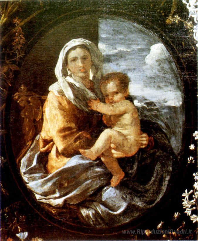 Ti offriamo una riproduzione artigianale su tela dell'opera famosa 'Vergine e il Bambino' di Nicolas Poussin, dal Museo delle Riproduzioni.