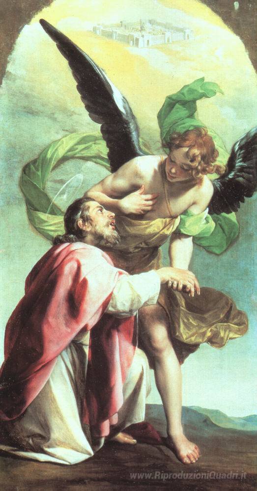 Ti offriamo una riproduzione artigianale su tela dell'opera famosa 'Visione di San Giovanni Evangelista di Gerusalemme' di Alonzo Cano, dal Museo delle Riproduzioni.