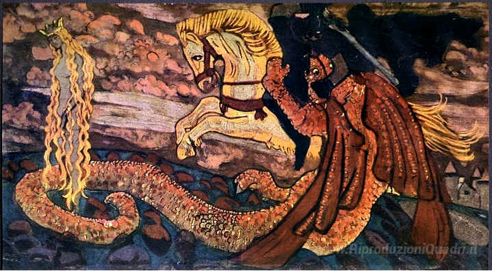 Benvenuti nella nostra selezione esclusiva di dipinti a olio, dove l’arte si fonde con la tradizione e l’eleganza italiana. Oggi vi presentiamo il capolavoro Zmievna dell’artista Nicholas Roerich, una figura di spicco nel panorama artistico del XX secolo, noto per la sua capacità di raccontare storie attraverso i colori e le forme.
