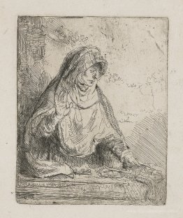 Ragged contadina con le sue mani dietro la schiena, possesso di