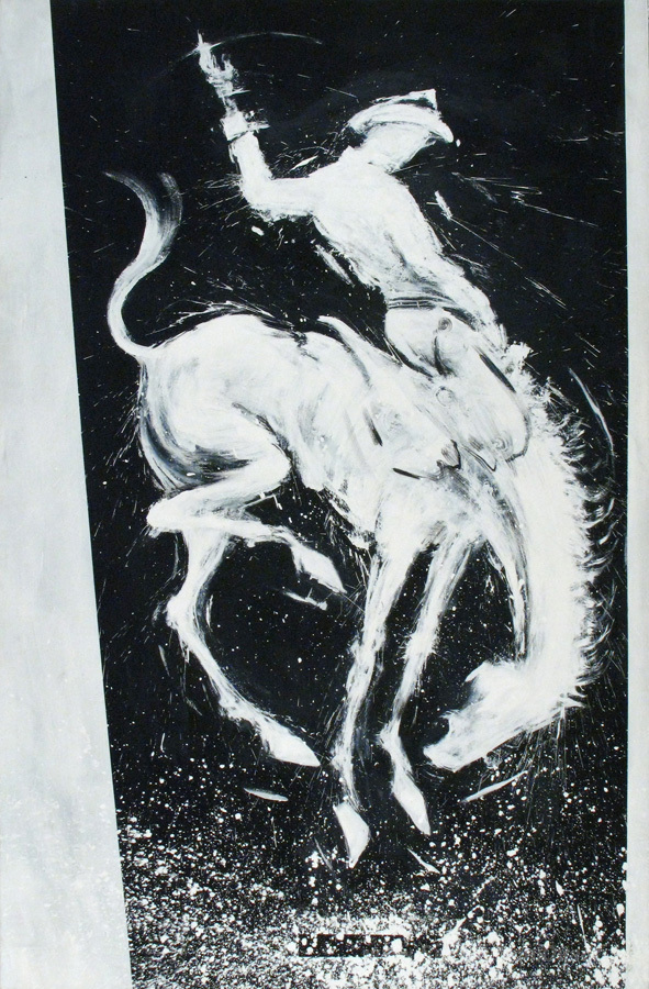 Ti offriamo una riproduzione artigianale su tela dell'opera famosa 'Rodeo' di Richard Hambleton, dal Museo delle Riproduzioni.