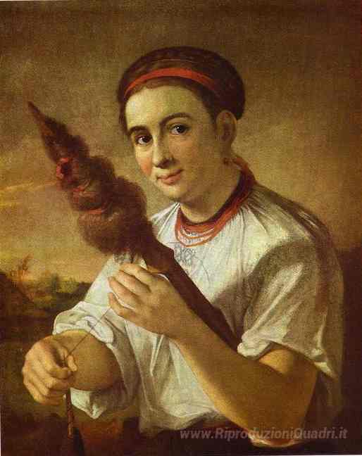 Ti offriamo una riproduzione artigianale su tela dell'opera famosa 'A Spinner' di Vasily Tropinin, dal Museo delle Riproduzioni.