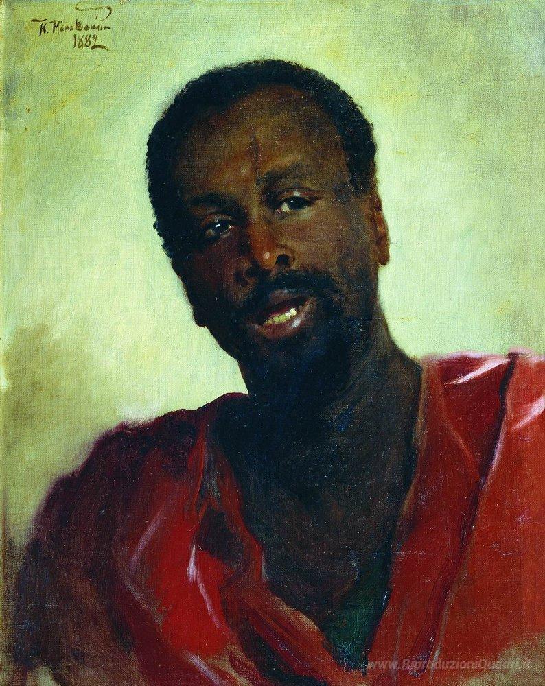 Ti offriamo una riproduzione artigianale su tela dell'opera famosa 'Africano' di Konstantin Makovsky, dal Museo delle Riproduzioni.