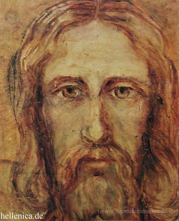Ti offriamo una riproduzione artigianale su tela dell'opera famosa 'Agiografia' di Polychronis Lembesis, dal Museo delle Riproduzioni.