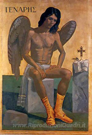 Ti offriamo una riproduzione artigianale su tela dell'opera famosa 'Alain come '' Gennaio ''' di Yiannis Tsaroychis, dal Museo delle Riproduzioni.