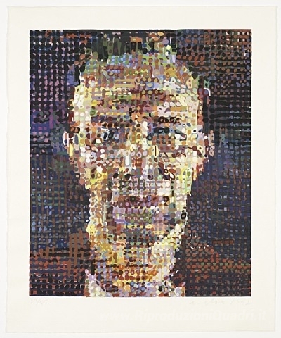 Ti offriamo una riproduzione artigianale su tela dell'opera famosa 'Alex (colore)' di Chuck Close, dal Museo delle Riproduzioni.