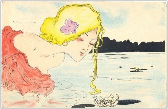 Ti offriamo una riproduzione artigianale su tela dell'opera famosa 'Amore Pensieri' di Raphael Kirchner, dal Museo delle Riproduzioni.