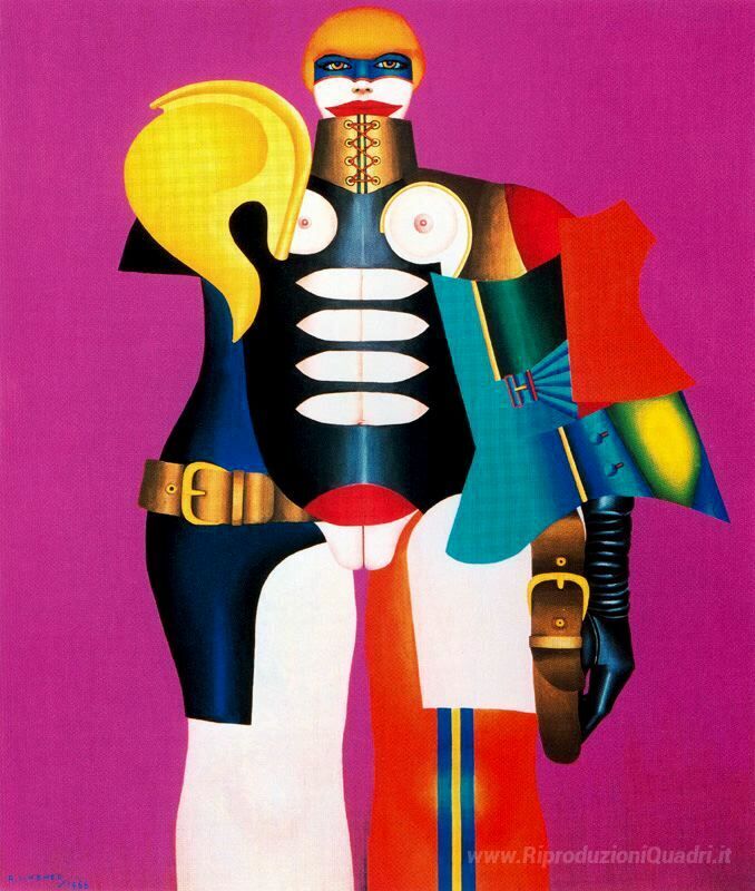 Ti offriamo una riproduzione artigianale su tela dell'opera famosa 'Angelo in Me' di Richard Lindner, dal Museo delle Riproduzioni.