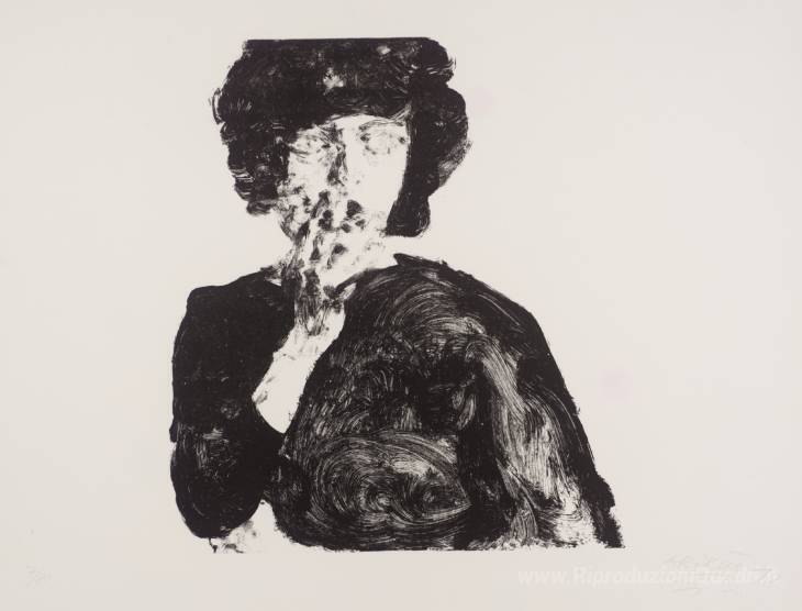 Ti offriamo una riproduzione artigianale su tela dell'opera famosa 'Anna con la mano sulla bocca' di Avigdor Arikha, dal Museo delle Riproduzioni.