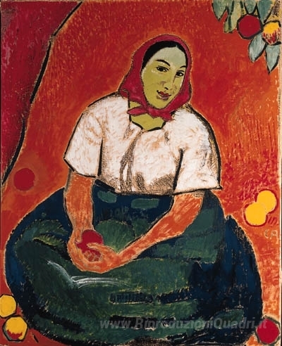 Ti offriamo una riproduzione artigianale su tela dell'opera famosa 'Apfelernte' di Cuno Amiet, dal Museo delle Riproduzioni.