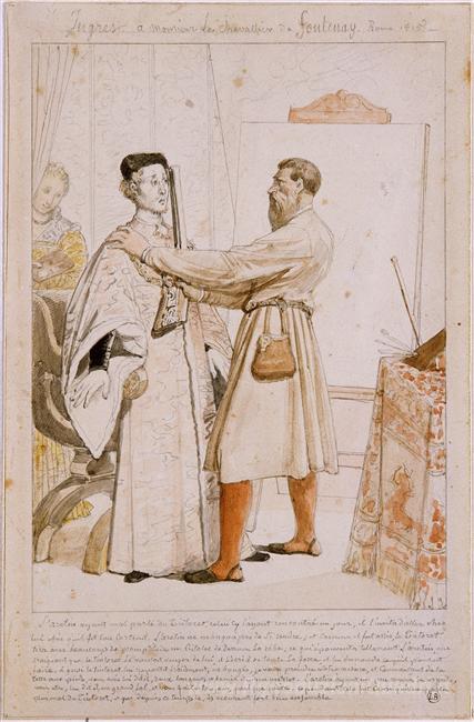 Ti offriamo una riproduzione artigianale su tela dell'opera famosa 'Aretino e Tintoretto' di Jean Auguste Dominique Ingres, dal Museo delle Riproduzioni.