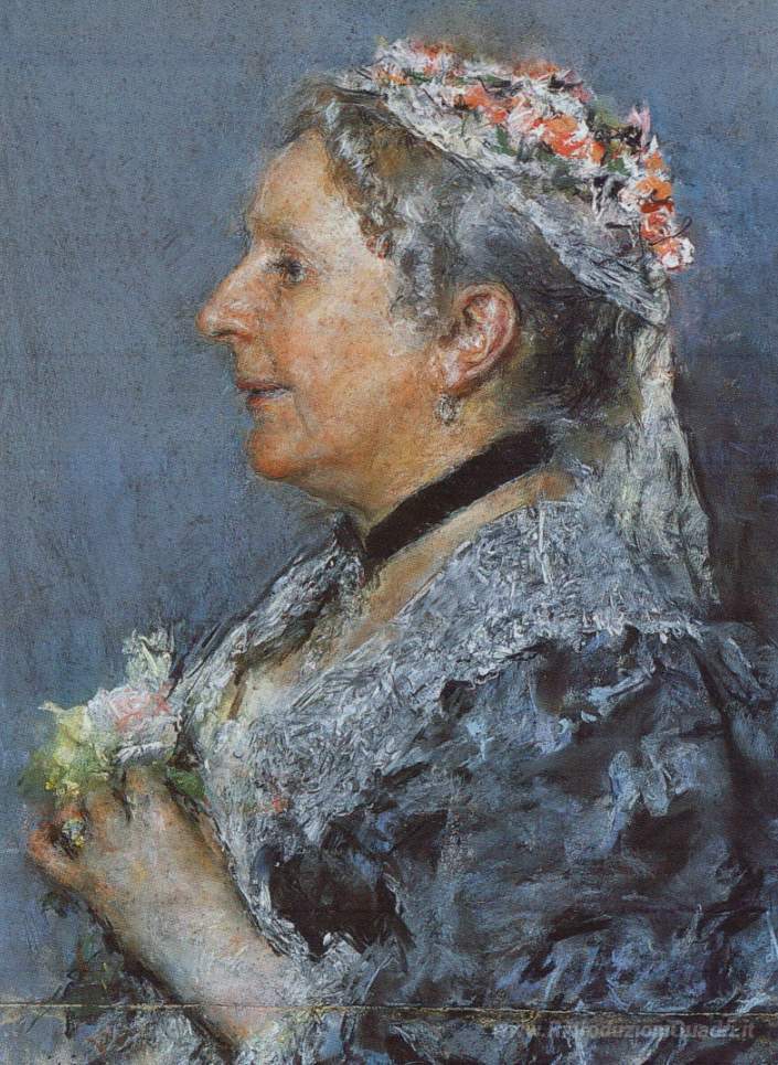 Ti offriamo una riproduzione artigianale su tela dell'opera famosa 'Ariana Wormeley Curtis' di Antonio Mancini, dal Museo delle Riproduzioni.