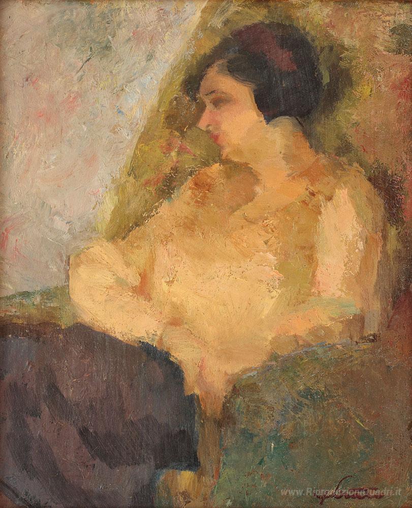Ti offriamo una riproduzione artigianale su tela dell'opera famosa 'Aristocrat Ritratto (Lila, nipote dell'artista)' di Francisc Sirato, dal Museo delle Riproduzioni.