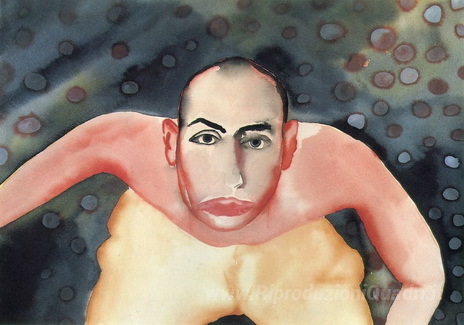 Ti offriamo una riproduzione artigianale su tela dell'opera famosa 'Attesa' di Francesco Clemente, dal Museo delle Riproduzioni.