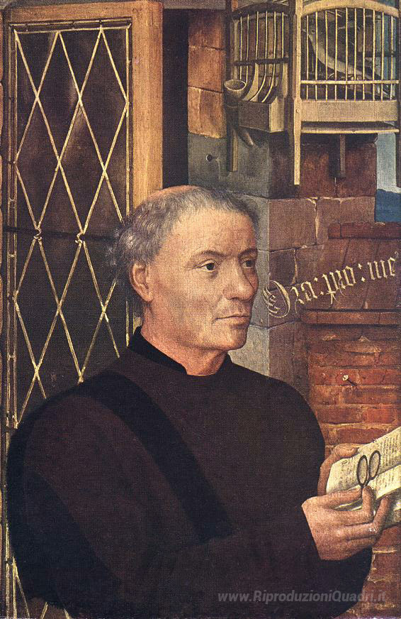 Ti offriamo una riproduzione artigianale su tela dell'opera famosa 'Benefattore con Bird Cage' di Matthias Grünewald, dal Museo delle Riproduzioni.