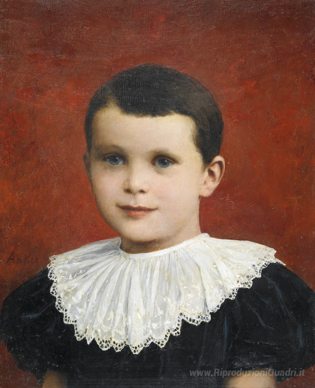 Ti offriamo una riproduzione artigianale su tela dell'opera famosa 'Bildnis des Jungen de Bros' di Albert Anker, dal Museo delle Riproduzioni.